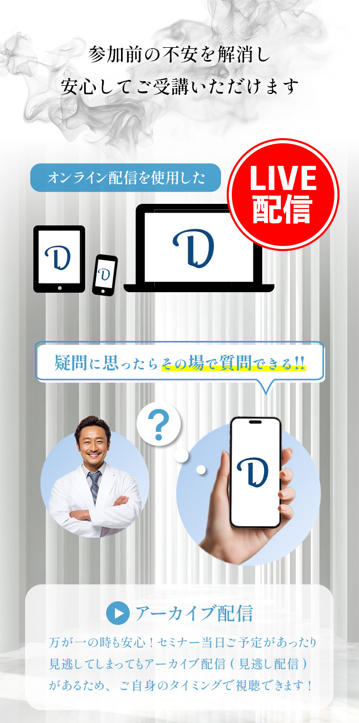 このセミナーは、先生の医院にとっての新しいチーム医療の出発点になります。
