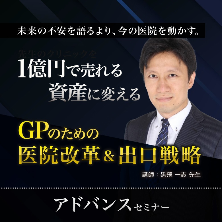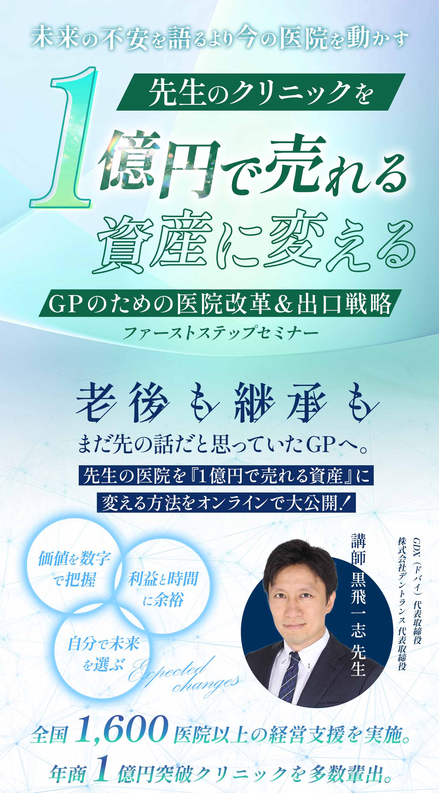 本セミナーは、医院の数字を経営管理ではなく資産価値として捉え直し、いま取り組める改善で『1億円で売れる資産』へ近づくための要点を90分で習得。